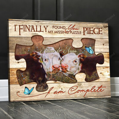 Funny Hereford Couple Canvas, Found My Missing Piece Farmhouse Wall Art for Husband and Wife