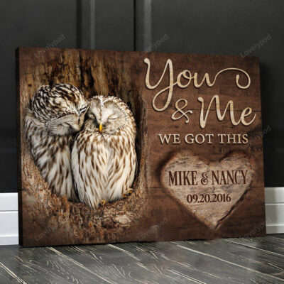 Personalized Owls Couple Wall Art, You and me We got this Canvas Wall Art for Wedding Anniversary