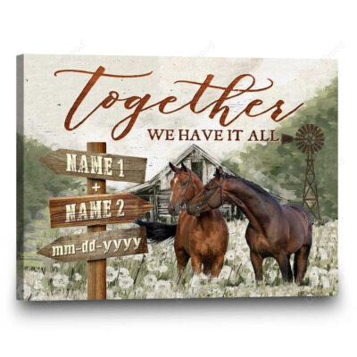 Custom Horses Couple Wall Art, Together We have it all Canvas, gift for Horse Lovers