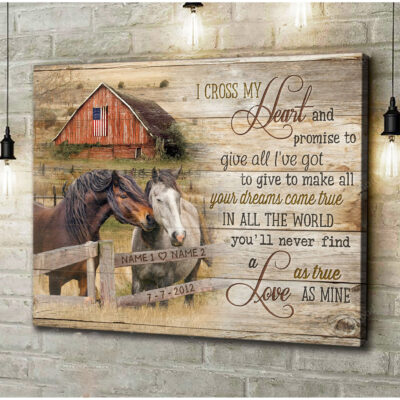 Horse Couple Farmhouse Decor, I cross my heart Wall Art Canvas for Him, Gift Birthday for who love horses
