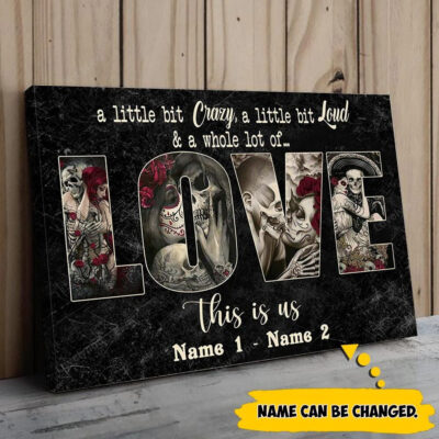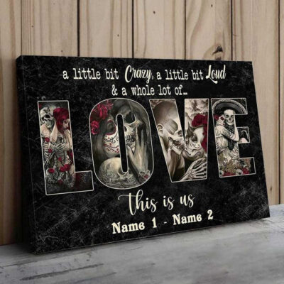 Personalized Skull Couple Canvas, A Whole lot of Love Wall Art Canvas for Her