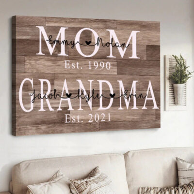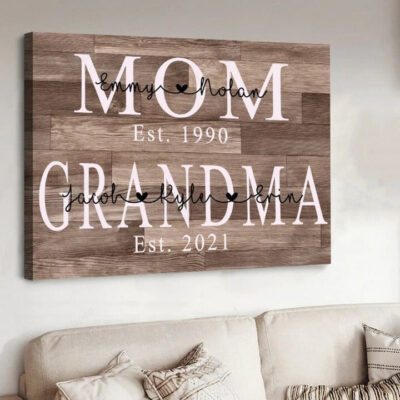 Personalized Mom Est Grandma Est Canvas Prints with Grandkids, Gift for Mom