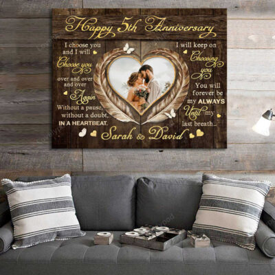 5 year anniversary gift for Wife, Custom Photo Couple Wall Art Canvas for Husband & Wife