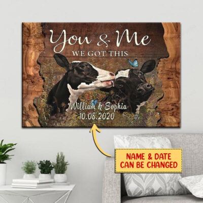 Customized Angus Cow Couple Wall Art, You & Me We got this Cow Farmhouse Canvas Bedroom