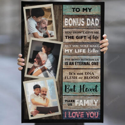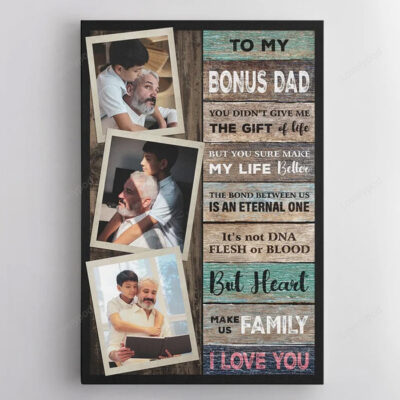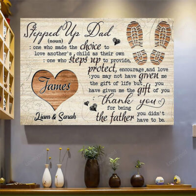Personalized photo Stepped Up Dad canvas wall art , Step Dad father’s day Gift