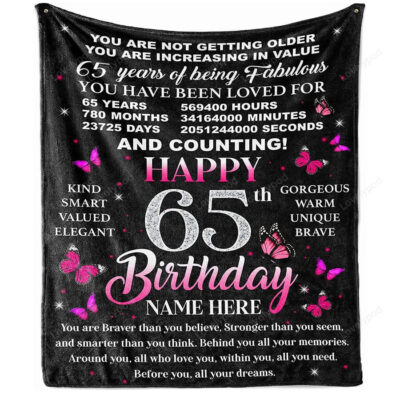 65Th Birthday Blanket For Women Her Wife Sister Mom Turning 65 Year Old Sherpa Fleece Throw Blankets Personalized Mothers Day Present