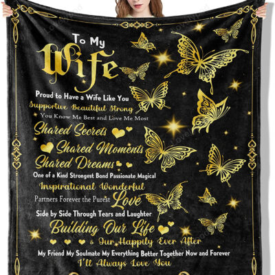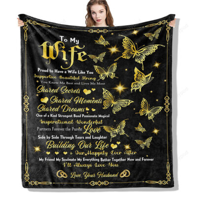 To My Wife Blanket Wife Gifts From Husband, Romantic I Love You Weeding Gift For Women Throw Blankets