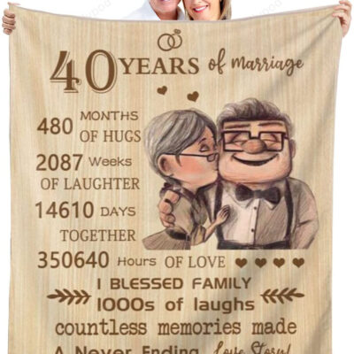 40th Anniversary Blanket Gifts, Gift for 40th Wedding Anniversary Throw Blankets, Golden 40 Years of Marriage for Couple