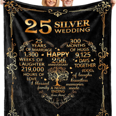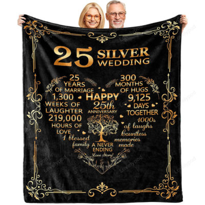 25th Anniversary Blanket Gifts, Gift for 25th Wedding Anniversary, 25th Silver Anniversary Couple Gifts for Husband Wife Him Her