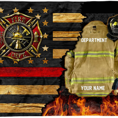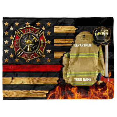 Personalized Firefighter Fleece Blanket, Redline Firefighter Department Gifts, Decorative Memorial Firefighter Throw Blanket