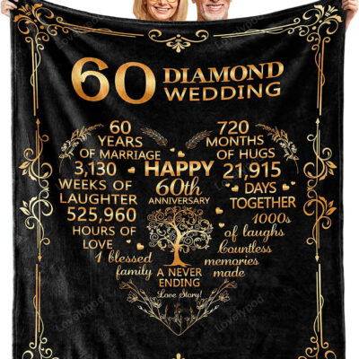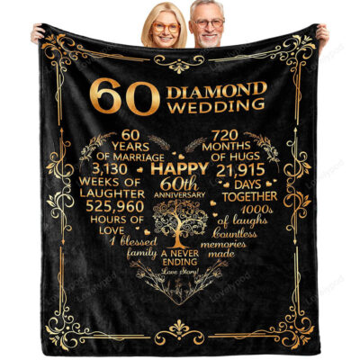 60th Anniversary Blanket Gifts, Gift for 60th Wedding Anniversary, 60th Diamond Wedding Anniversary Couple Gifts for Husband Wife