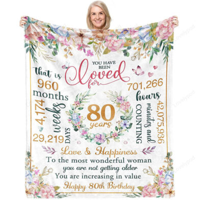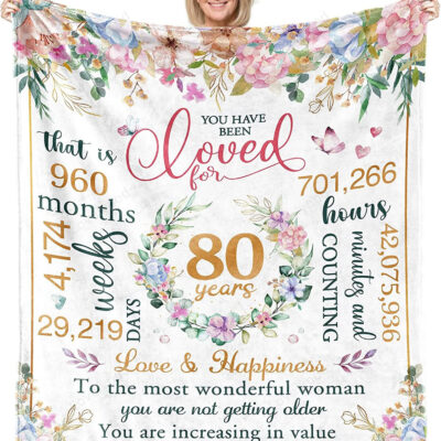 80th Birthday Gifts for Women, Happy 80th Birthday Gifts, 80 Year Old Gifts for Mom Dad Grandma Blanket 50″ X 60″