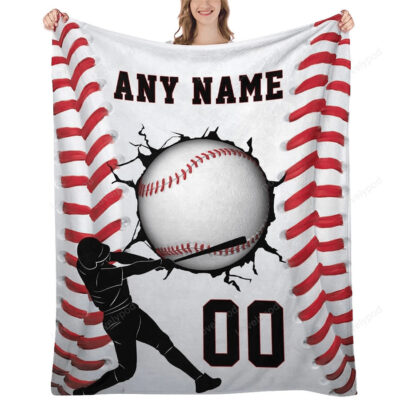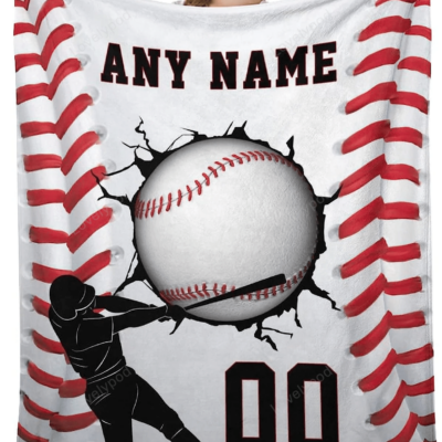 Baseball Blanket Personalized Name Blanket for Kids Adults, Custom Baseball Blankets, Sports Throw Blanket for Boys Mens Gifts