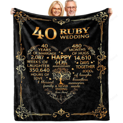 40th Anniversary Blanket Gifts, Gift for 40th Wedding Anniversary, 40th Ruby Wedding Anniversary Couple Gifts
