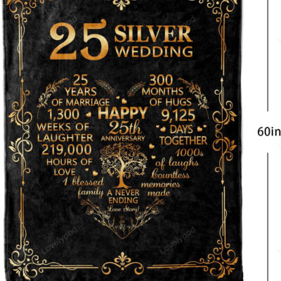 25th Anniversary Blanket Gifts, Gift for 25th Wedding Anniversary, 25th Silver Anniversary Couple Gifts for Husband Wife Him Her