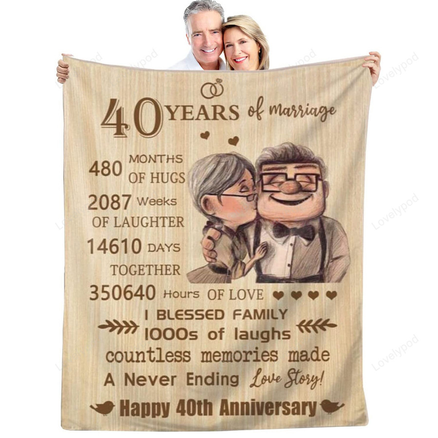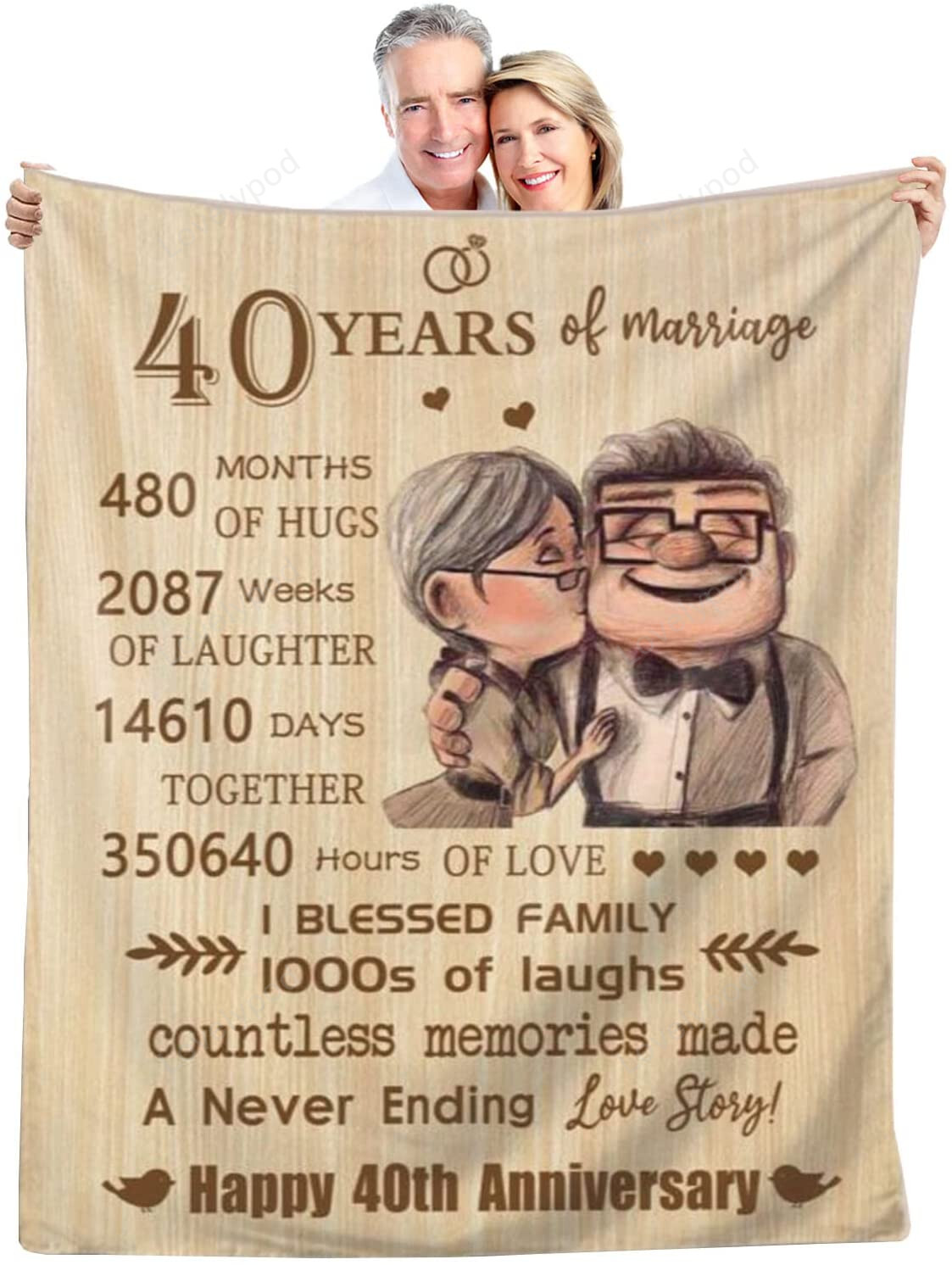 40th Anniversary Blanket Gifts, Gift for 40th Wedding Anniversary Throw Blankets, Golden 40 Years of Marriage for Couple