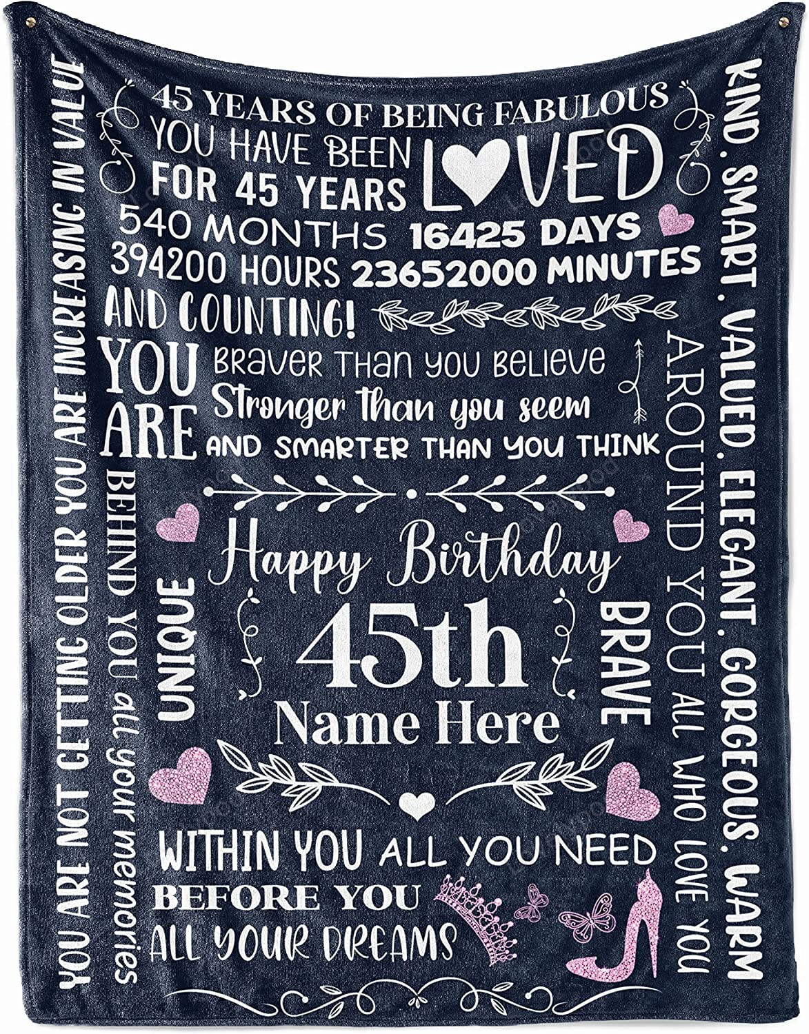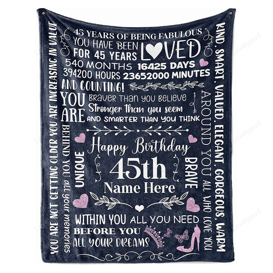 45th Birthday Blanket 45 Year Old Idea Throw Blankets Decorations Personalized Turning 45 Bday for Her Mom