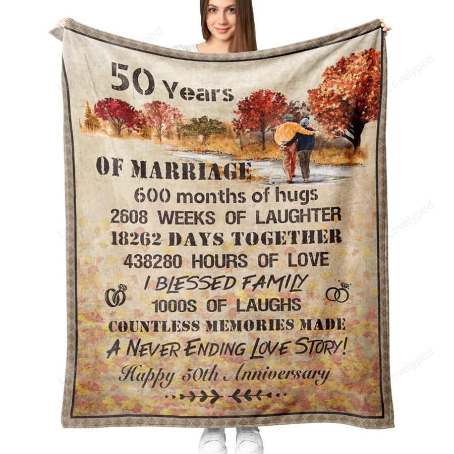 50th Anniversary Gifts Blanket, 50 Years of Marriage Gifts for Parents Couple Adults Wife Husband