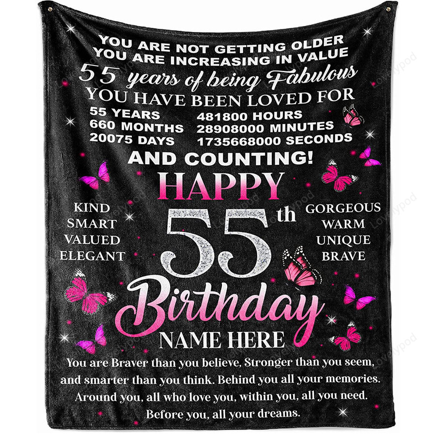 55th Birthday Blanket for Women Her Wife Sister Mom Friends Grandmother, 55-Year-Old Blankets