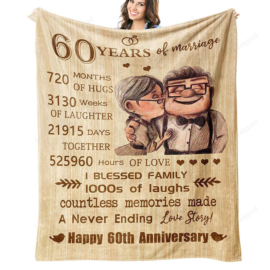 60Th Anniversary Blanket Gifts – Gift For 60Th Wedding Anniversary Throw Blankets – 60 Years Of Marriage For Couple Parents Grandparents