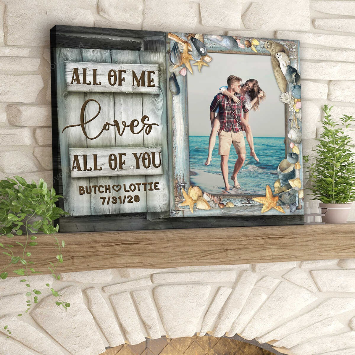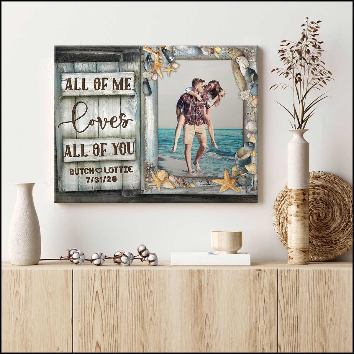 Summer Beach Window Couple Canvas, Personalized Gifts For Wedding Anniversary, All Of Me Loves All Of You Beach House Wall Art