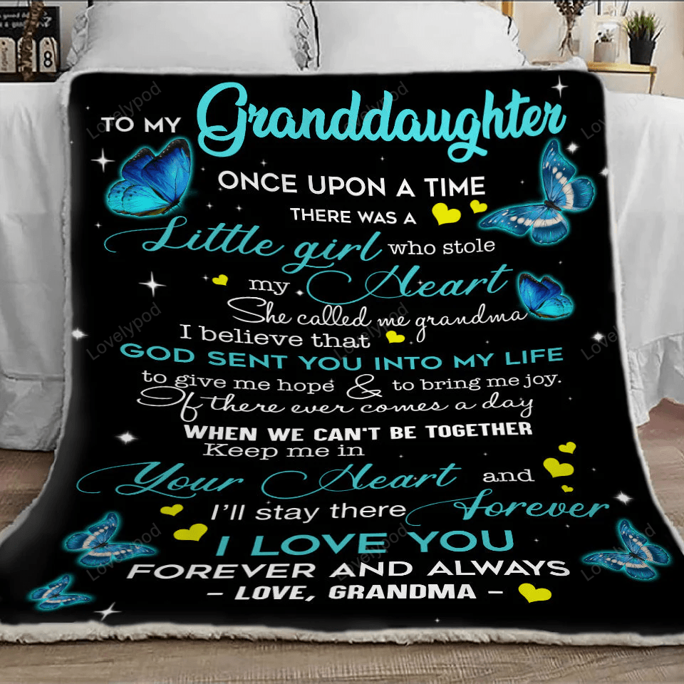 To My Granddaughter Love From Grandma Butterfly Fleece Sherpa Woven Blankets Gifts For Granddaughter