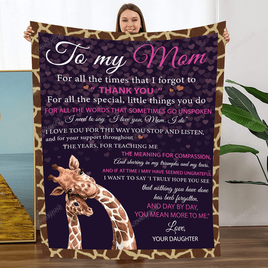 To My Mom Blanket – Gift Blanket for Mom From Daughter for Mother’s Day Birthday Christmas – Giraffe Blanket
