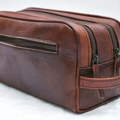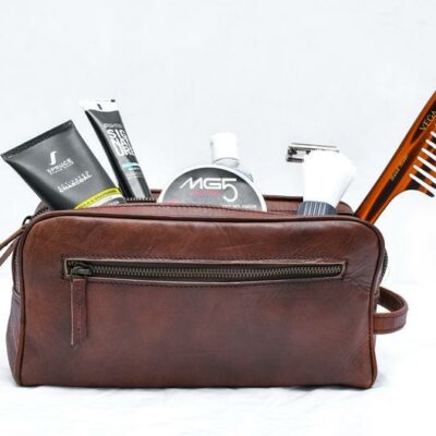 Keep your all grooming products organized and accessible with this stylish leather toiletry bag. Whether you?re going globetrotting or heading to the travel and gym, this essential small leather piece of kit will help you organize your things easily so you can take them with you wherever you go.